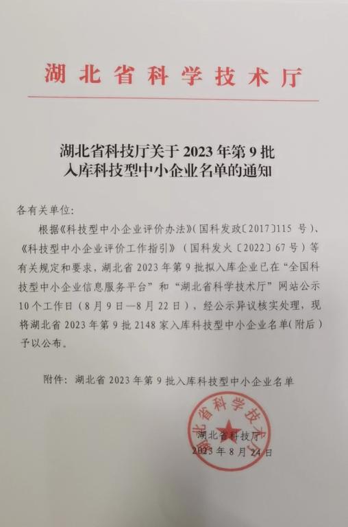 湖北省2023年第9批入庫(kù)科技型中小企業(yè)名單公告正文.jpg PICTURE