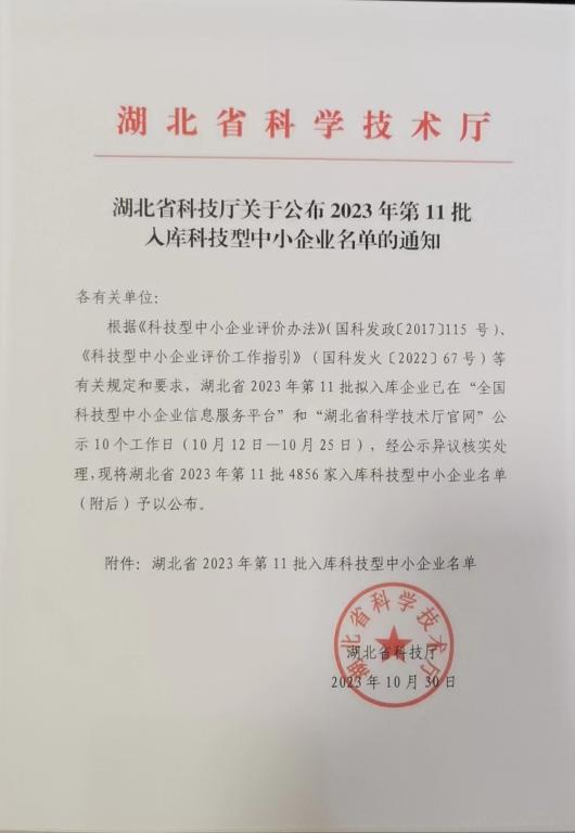 湖北省2023年第11批入庫科技型中小企業(yè)名單公告