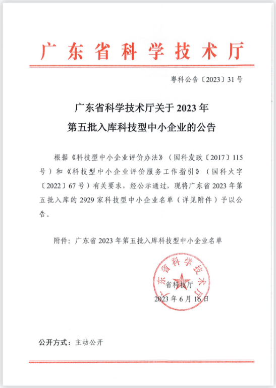 廣東省2023年第5批入庫科技型中小企業(yè)名單公告