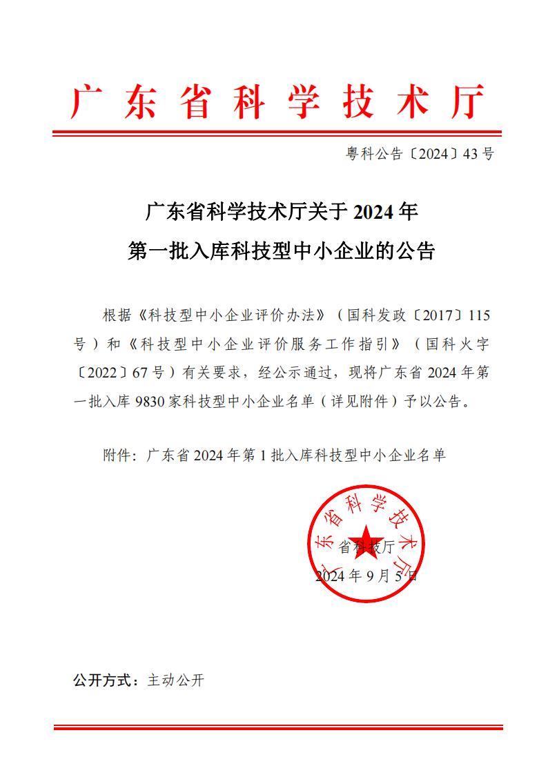 廣東省2024年第1批入庫(kù)科技型中小企業(yè)名單公告