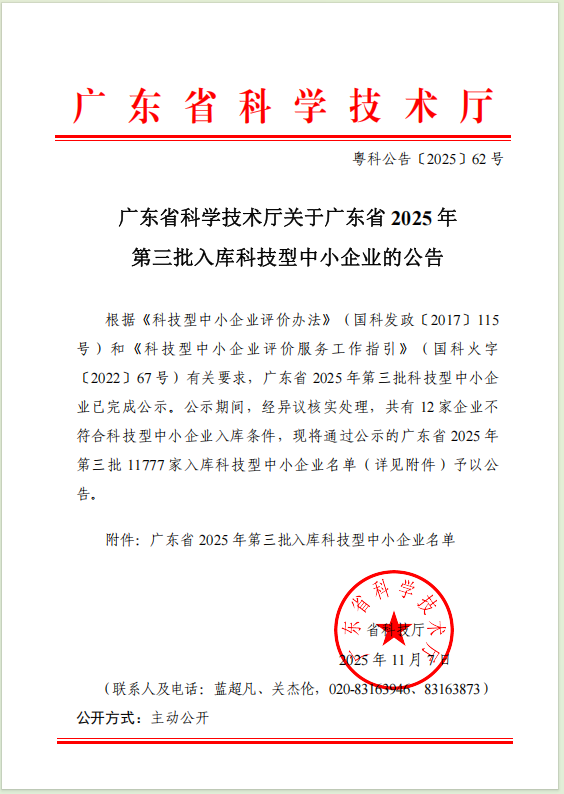 廣東省2025年第3批入庫科技型中小企業(yè)名單公告