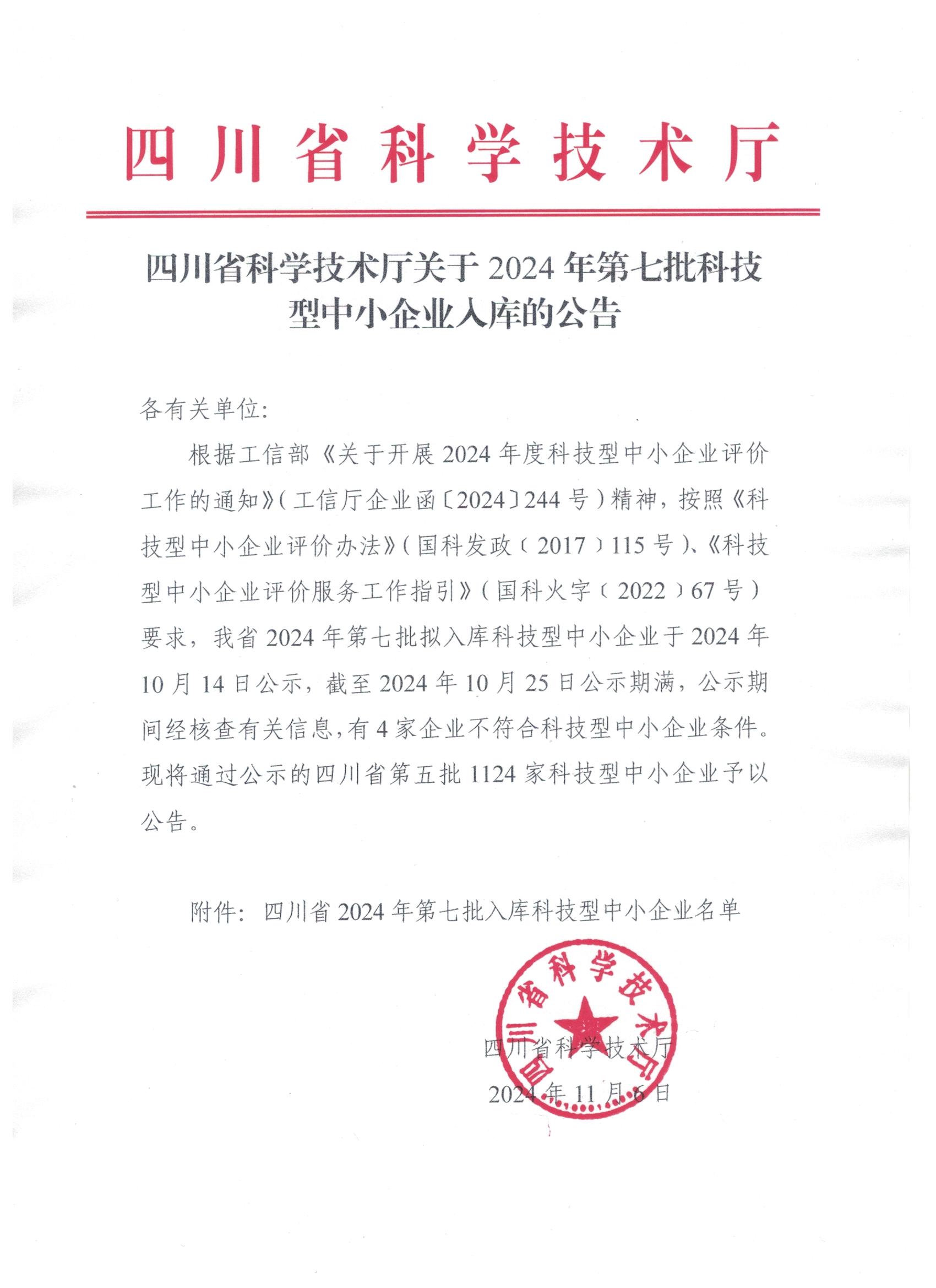 四川省2024年第7批入庫(kù)科技型中小企業(yè)名單公告正文.jpg PICTURE