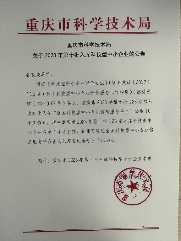 重慶市2023年第10批入庫科技型中小企業(yè)名單公告