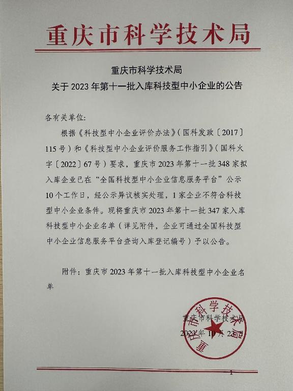 重慶市2023年第11批入庫科技型中小企業(yè)名單公告