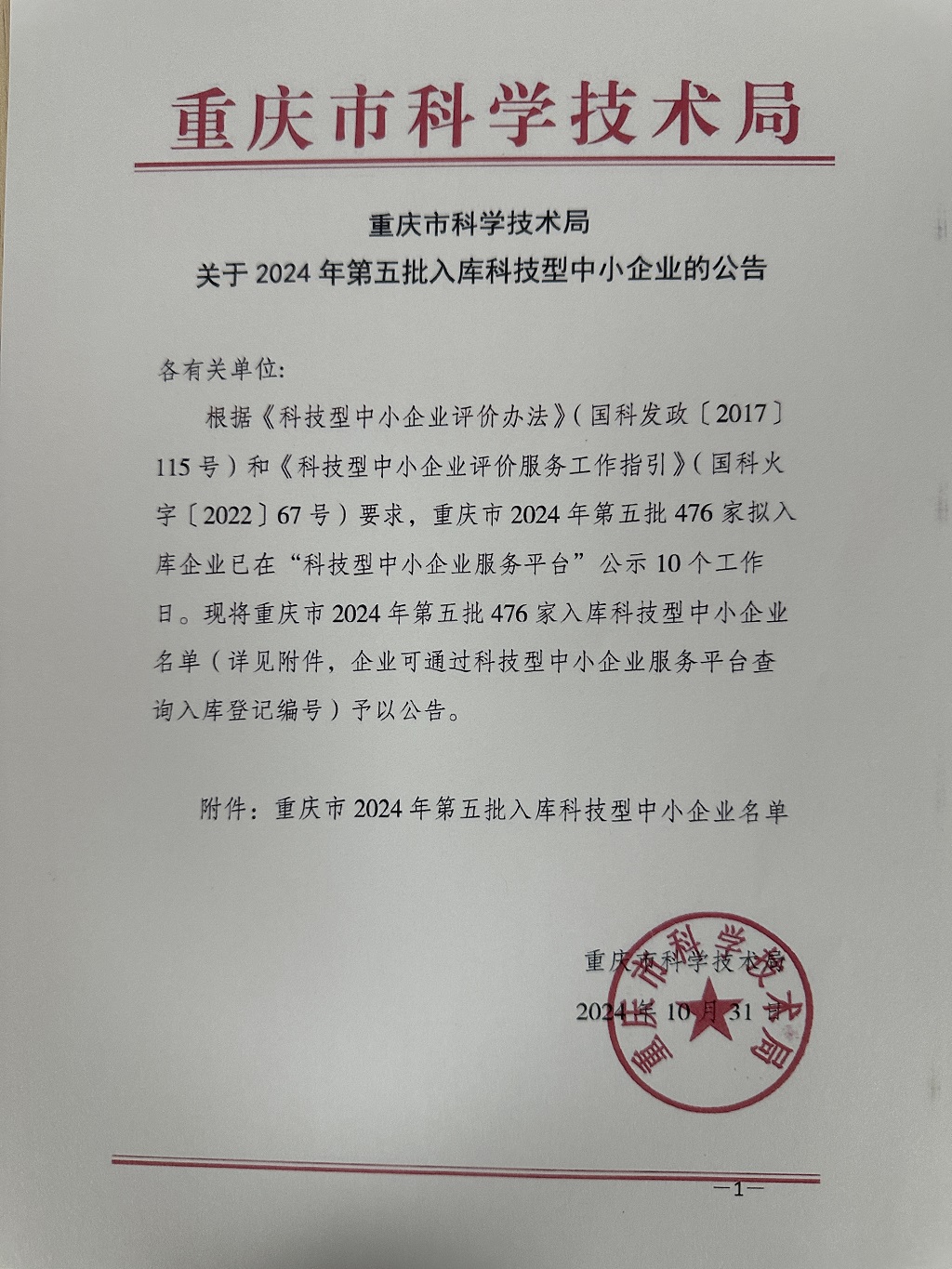 重慶市2024年第5批入庫科技型中小企業(yè)名單公告