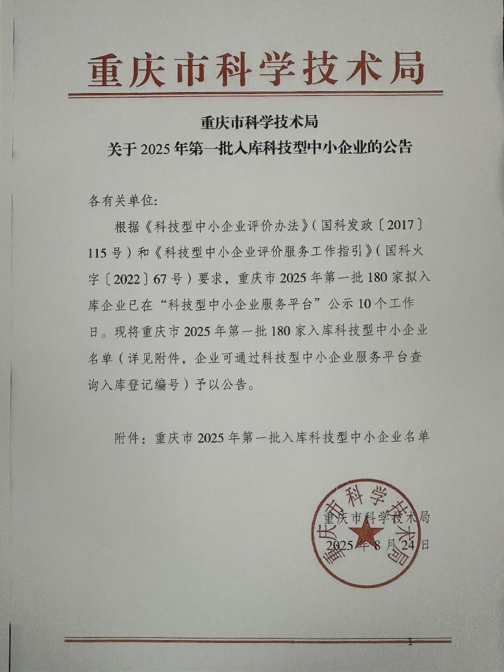重慶市2025年第1批入庫(kù)科技型中小企業(yè)名單公告