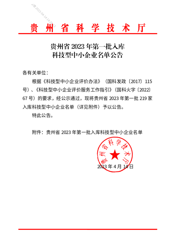 貴州省2023年第1批入庫科技型中小企業(yè)名單公告