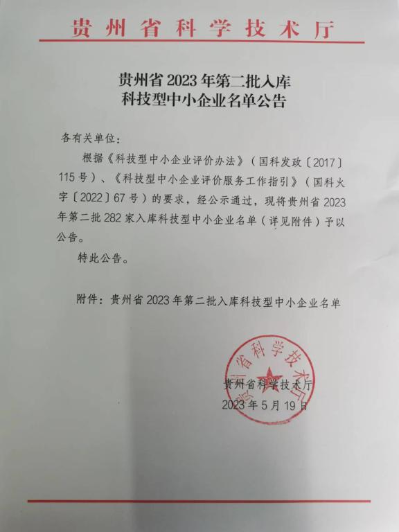 貴州省2023年第2批入庫科技型中小企業(yè)名單公告