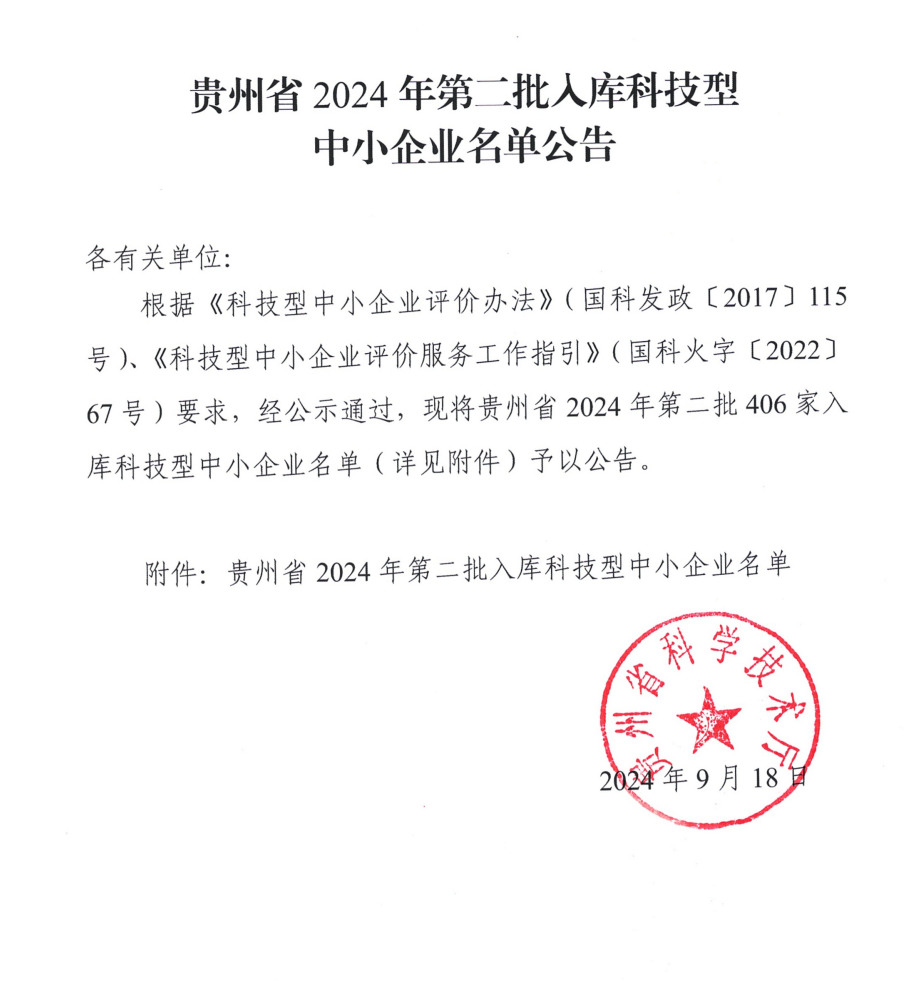 貴州省2024年第2批入庫科技型中小企業(yè)名單公告