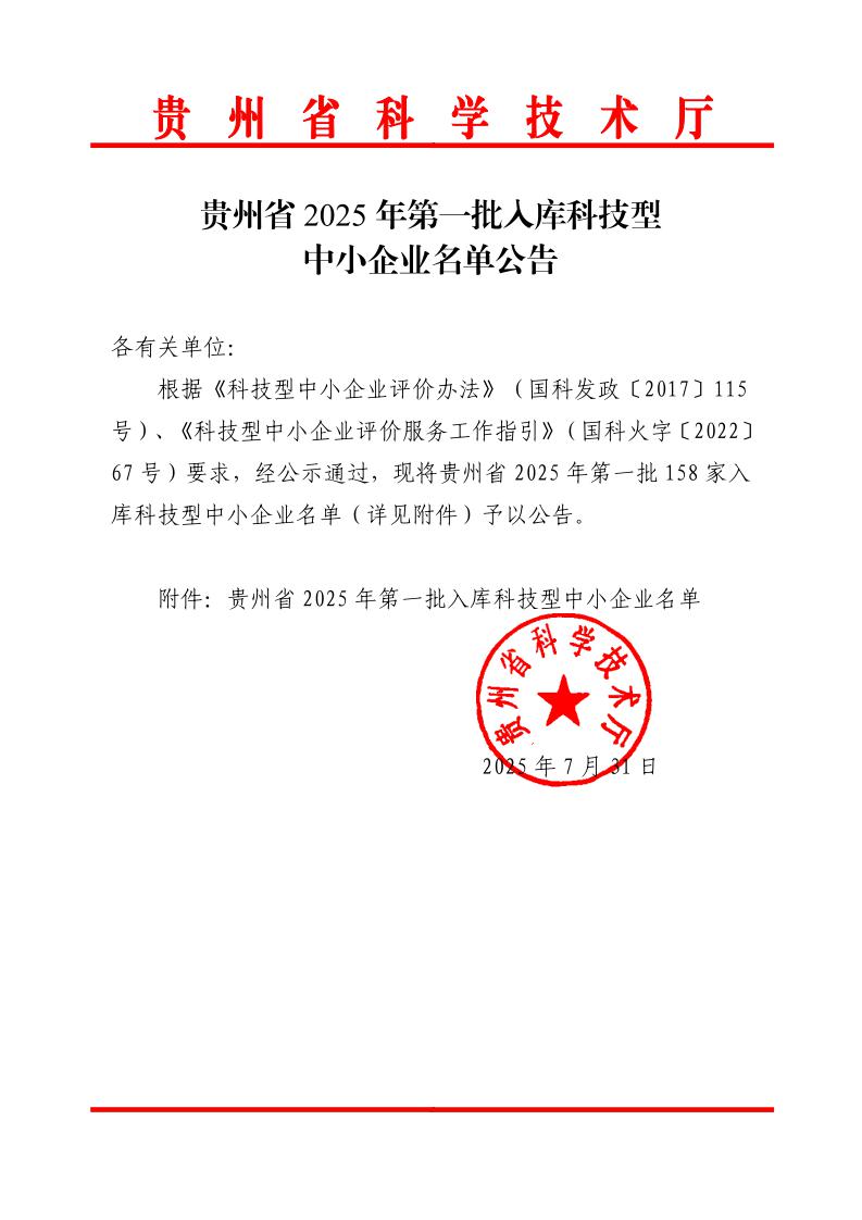 貴州省2025年第1批入庫科技型中小企業(yè)名單公告
