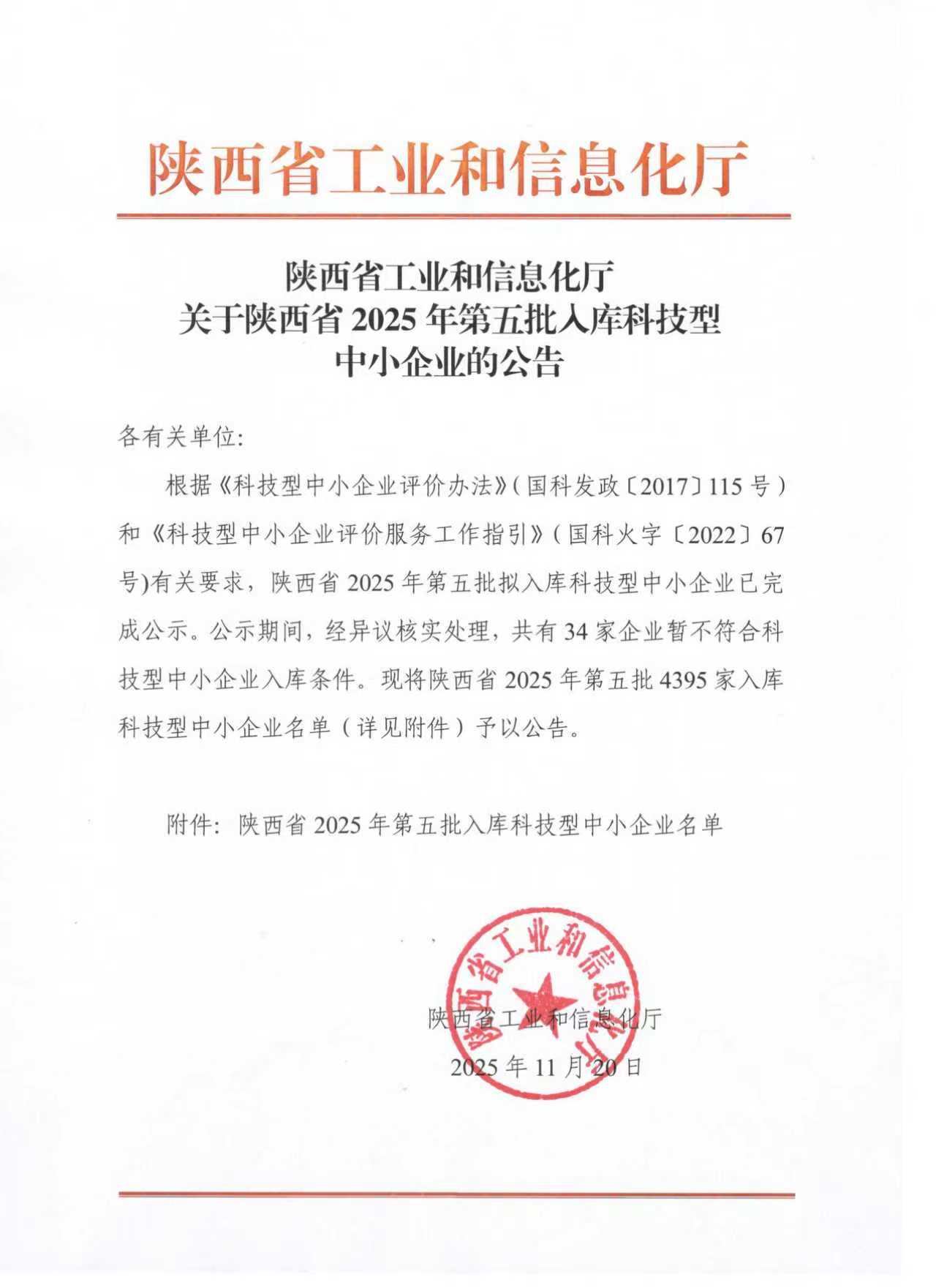 陜西省2025年第5批入庫科技型中小企業(yè)名單公告