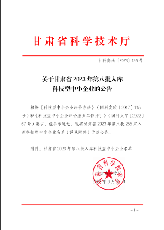 甘肅省2023年第8批入庫科技型中小企業(yè)名單公告
