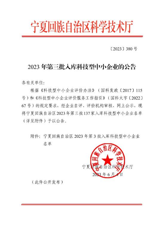 寧夏回族自治區(qū)2023年第3批入庫(kù)科技型中小企業(yè)名單公告正文.jpg PICTURE