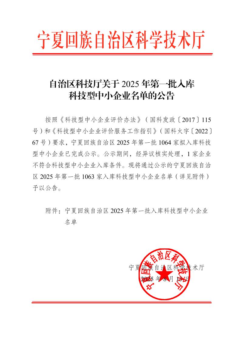 寧夏回族自治區(qū)2025年第1批入庫(kù)科技型中小企業(yè)名單公告正文.jpg PICTURE