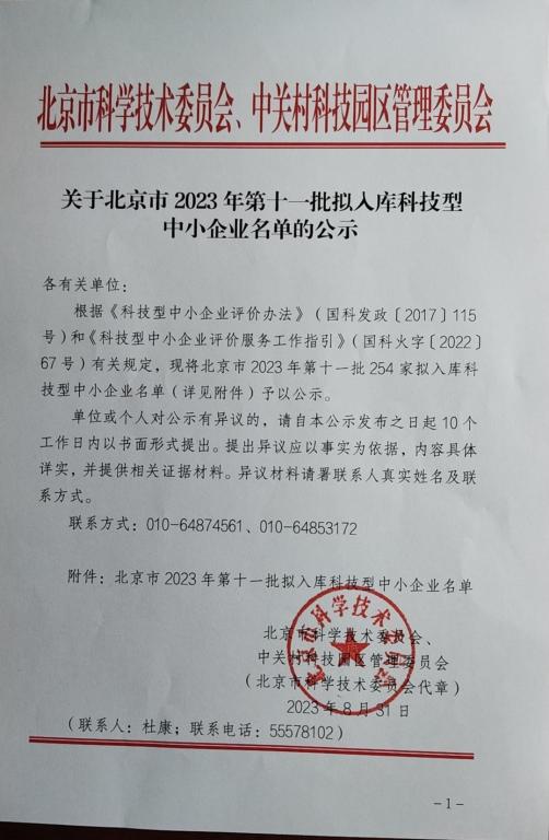 北京市2023年第11批擬入庫科技型中小企業(yè)名單公示