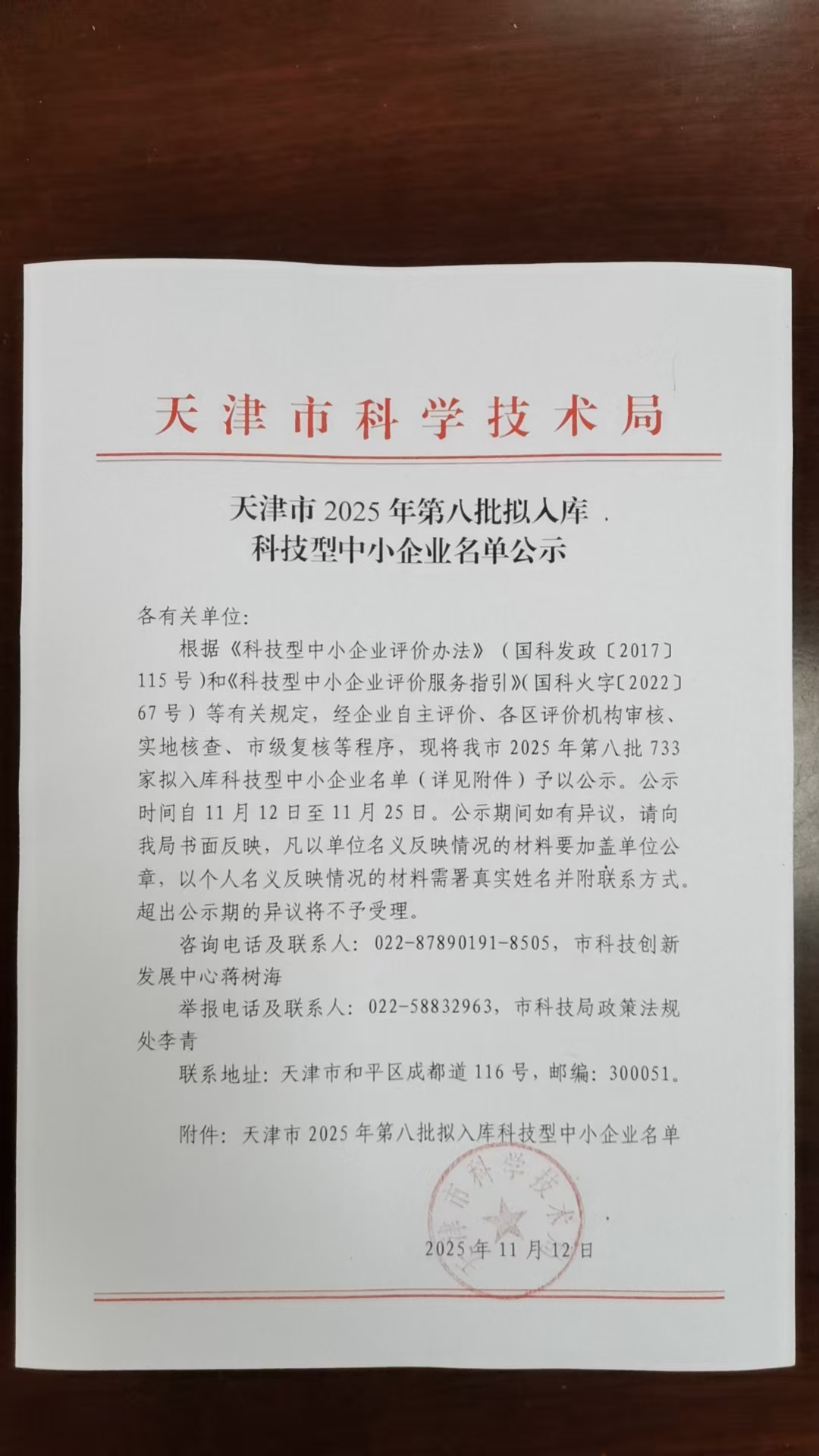 天津市2025年第8批擬入庫科技型中小企業(yè)名單公示