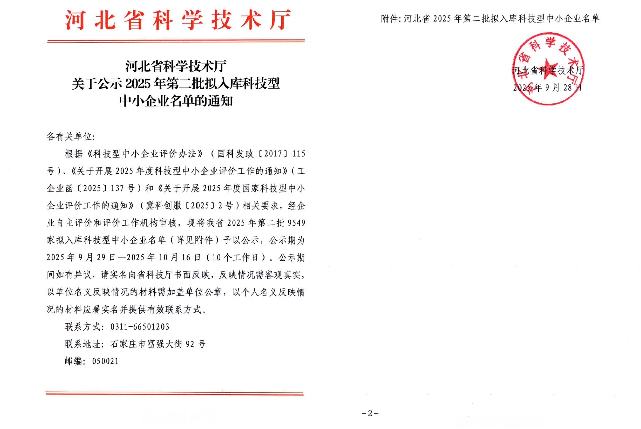 河北省2025年第2批擬入庫科技型中小企業(yè)名單公示