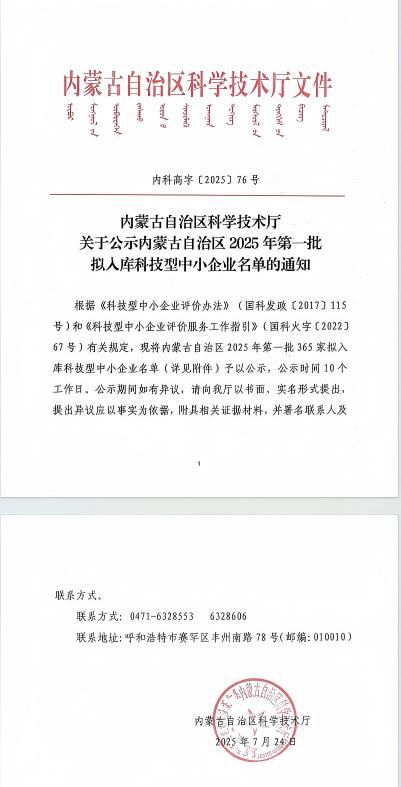 內(nèi)蒙古自治區(qū)2025年第1批擬入庫(kù)科技型中小企業(yè)名單公示正文.jpg PICTURE