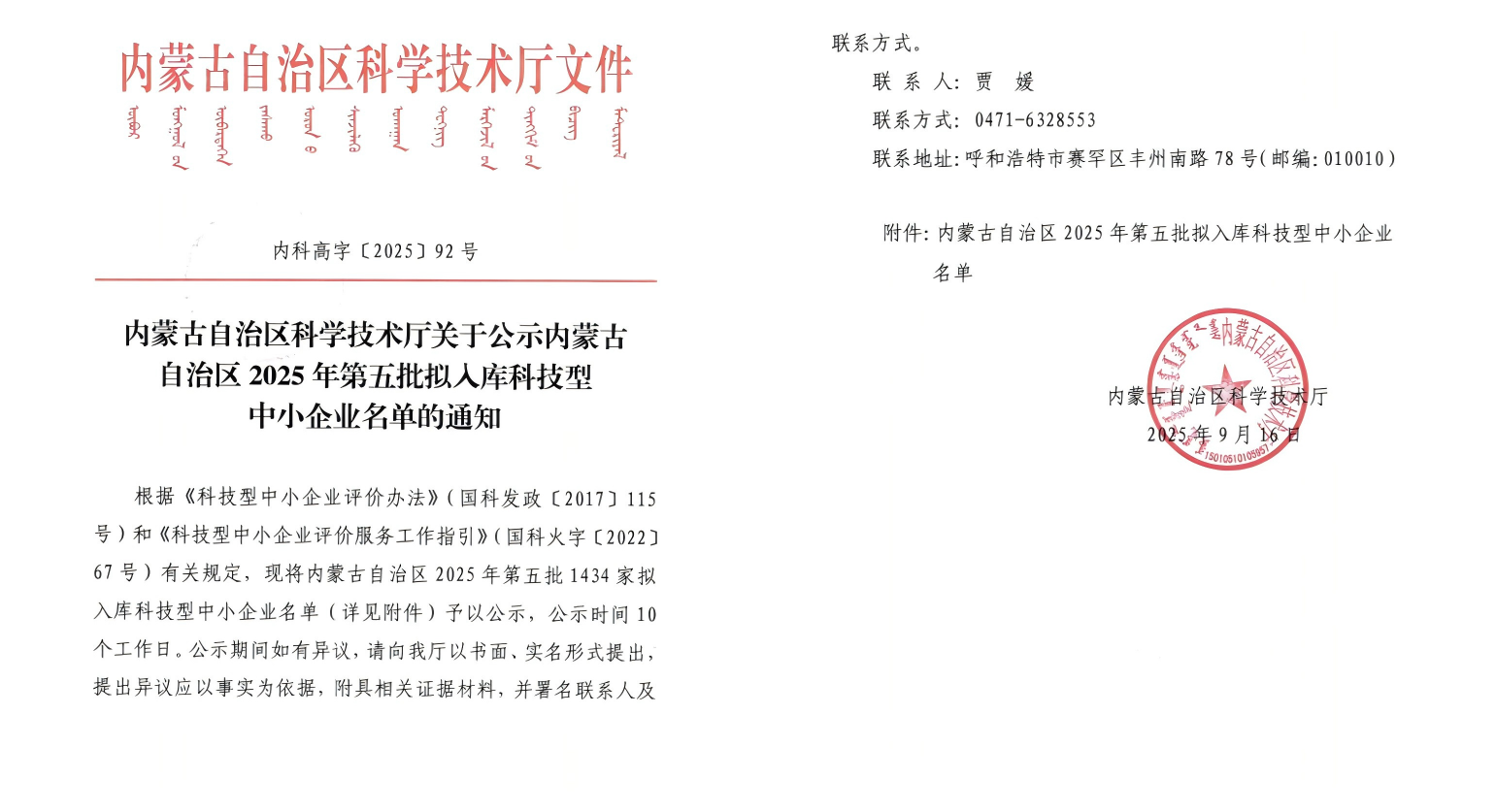 內(nèi)蒙古自治區(qū)2025年第5批擬入庫科技型中小企業(yè)名單公示