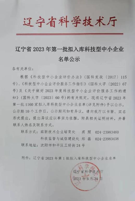 遼寧省2023年第1批擬入庫(kù)科技型中小企業(yè)名單公示正文.jpg PICTURE