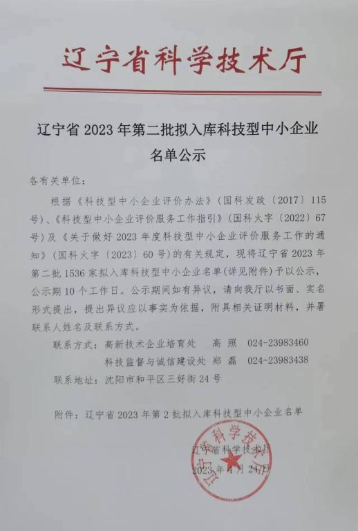 遼寧省2023年第2批擬入庫(kù)科技型中小企業(yè)名單公示正文.jpg PICTURE