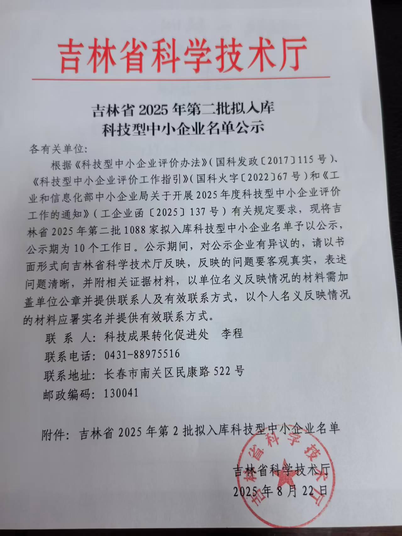 吉林省2025年第2批擬入庫科技型中小企業(yè)名單公示