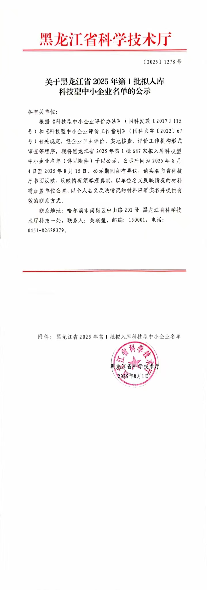 黑龍江省2025年第1批擬入庫科技型中小企業(yè)名單公示