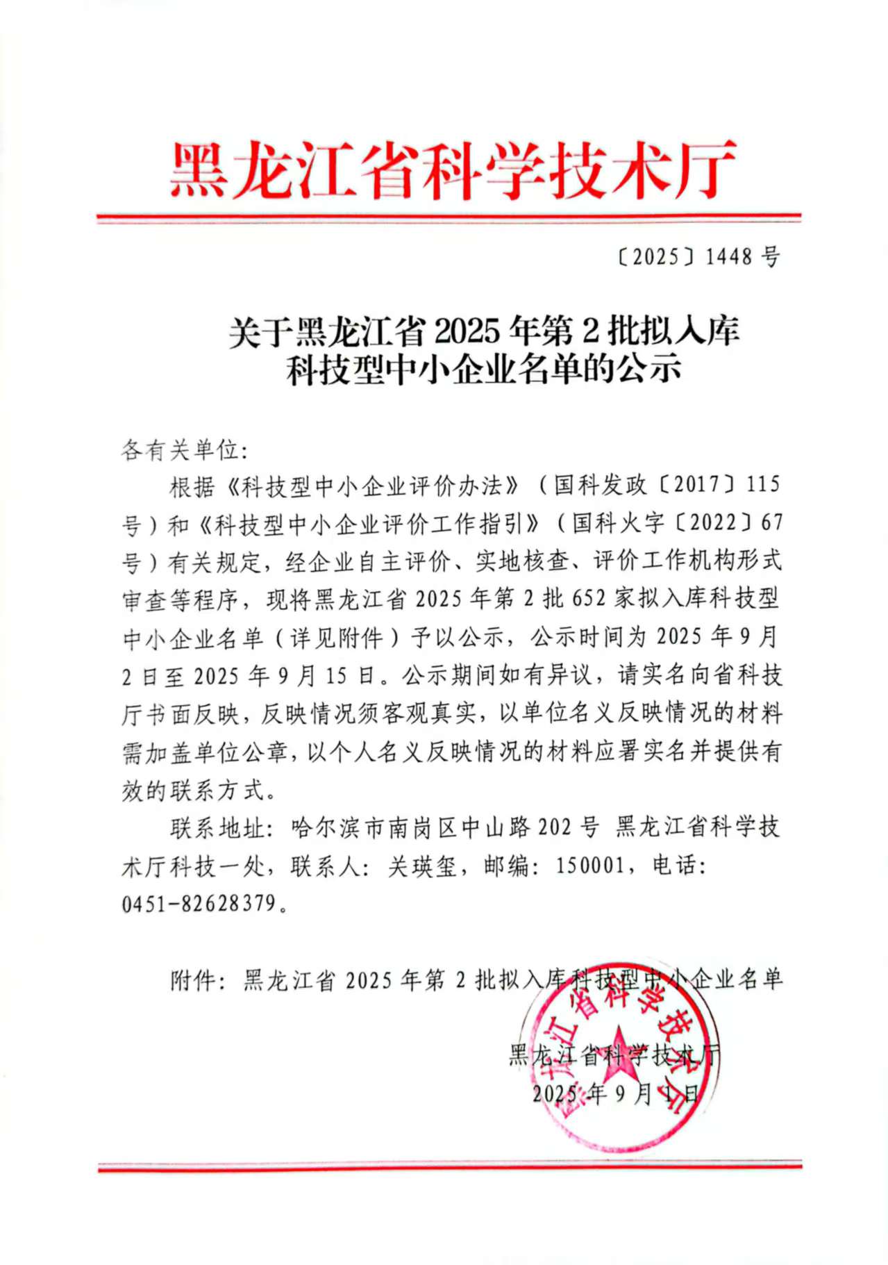黑龍江省2025年第2批擬入庫(kù)科技型中小企業(yè)名單公示正文.jpg PICTURE