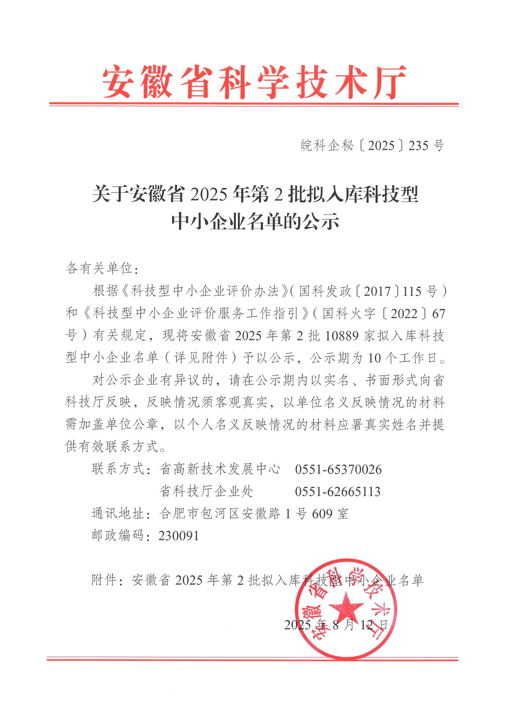 安徽省2025年第2批擬入庫(kù)科技型中小企業(yè)名單公示正文.jpg PICTURE