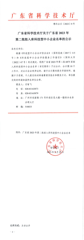 廣東省2023年第2批擬入庫(kù)科技型中小企業(yè)名單公示