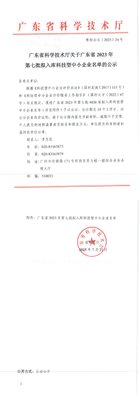 廣東省2023年第7批擬入庫科技型中小企業(yè)名單公示