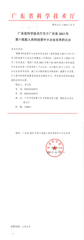 廣東省2023年第10批擬入庫科技型中小企業(yè)名單公示