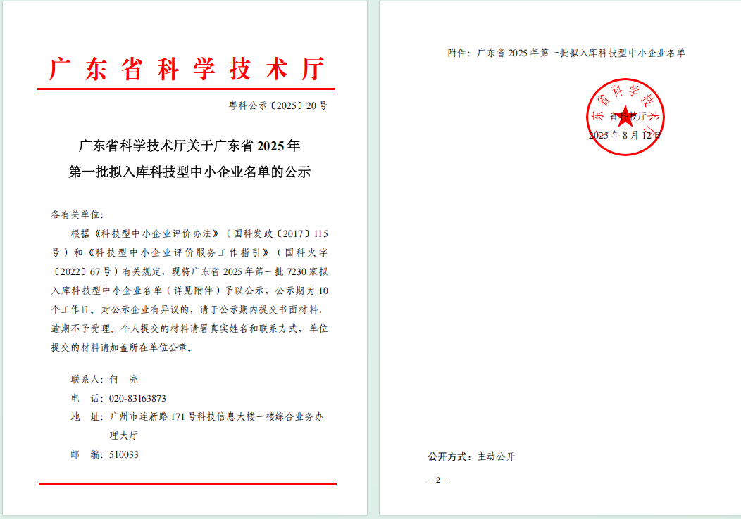 廣東省2025年第1批擬入庫科技型中小企業(yè)名單公示