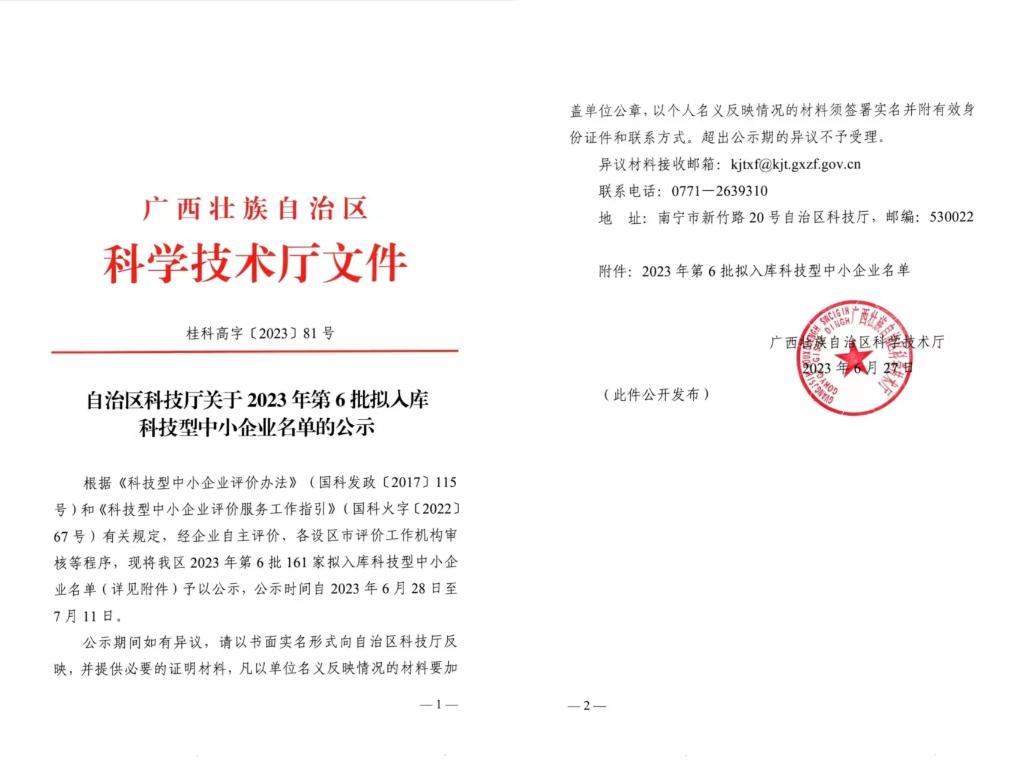 廣西壯族自治區(qū)2023年第6批擬入庫(kù)科技型中小企業(yè)名單公示正文.jpg PICTURE