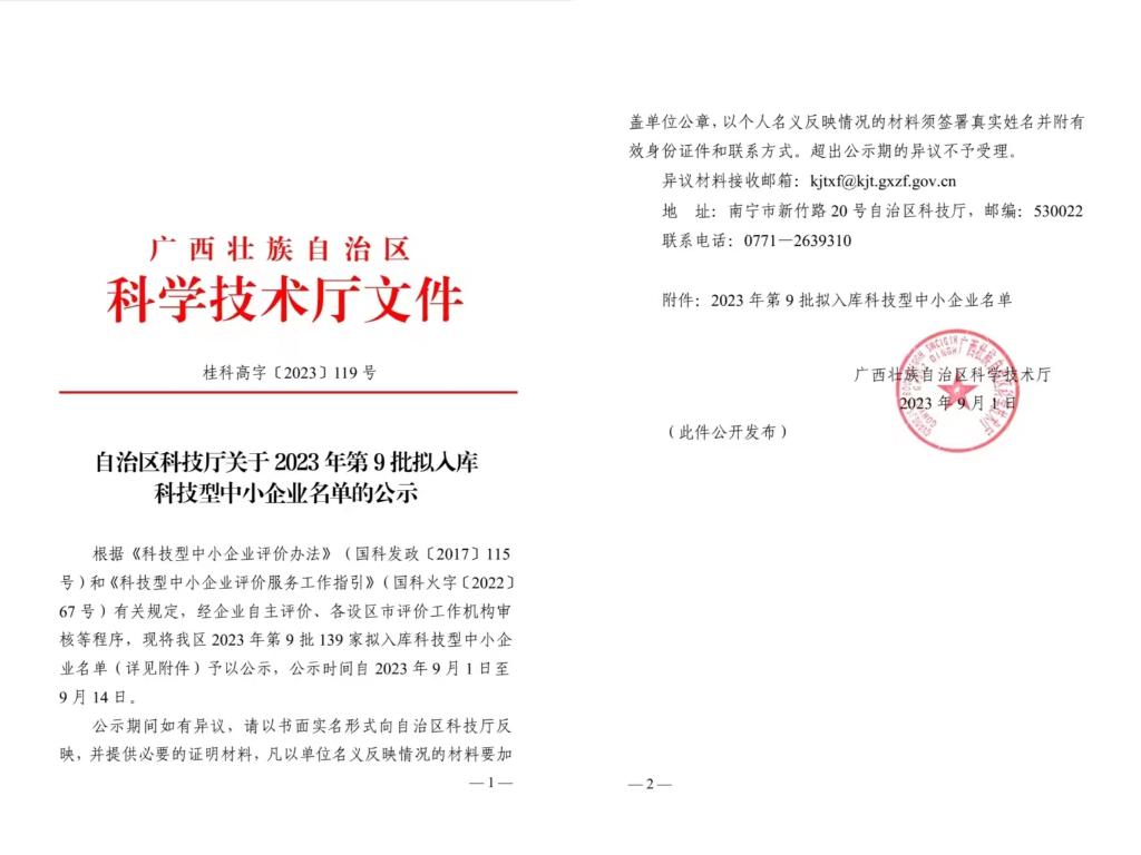 廣西壯族自治區(qū)2023年第9批擬入庫(kù)科技型中小企業(yè)名單公示正文.jpg PICTURE