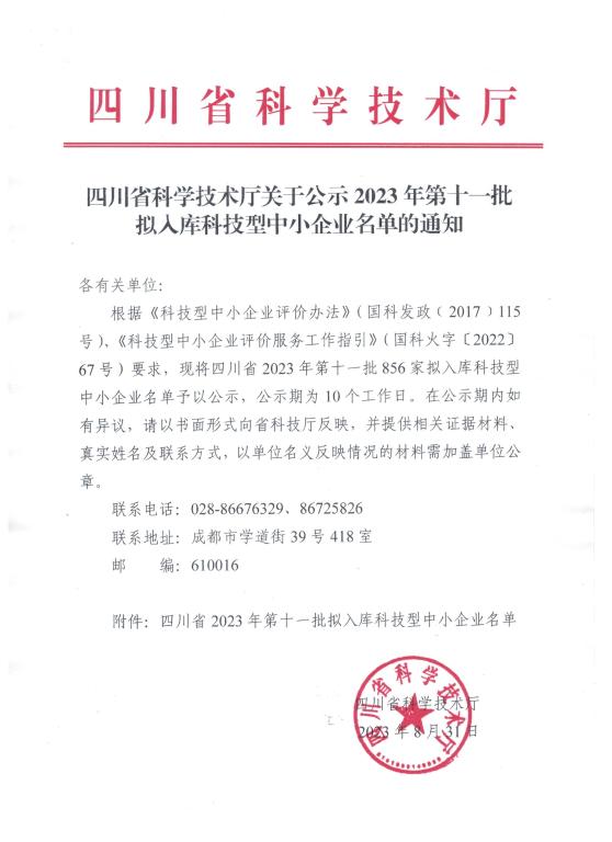 四川省2023年第11批擬入庫(kù)科技型中小企業(yè)名單公示正文.jpg PICTURE