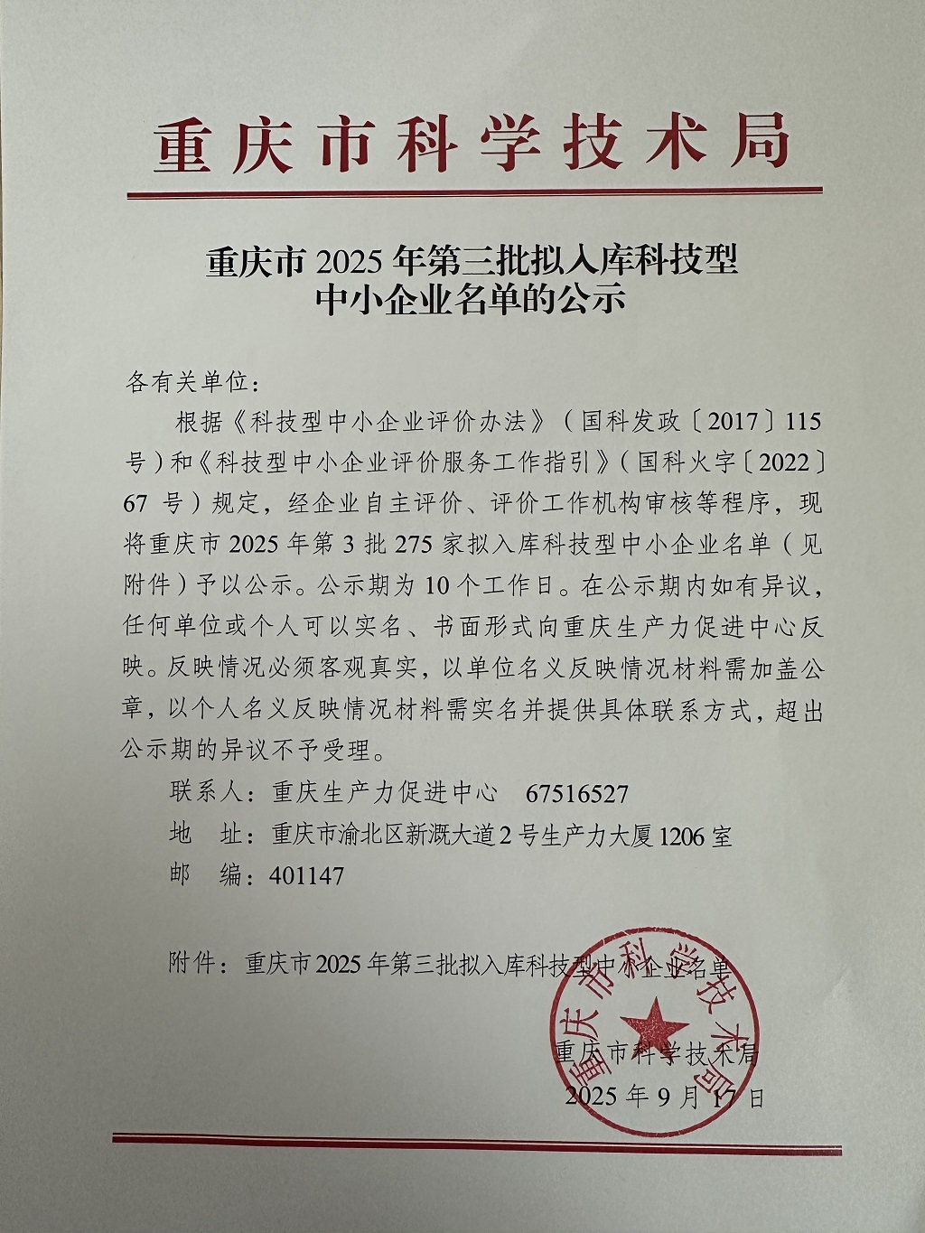 重慶市2025年第3批擬入庫(kù)科技型中小企業(yè)名單公示正文.jpg PICTURE
