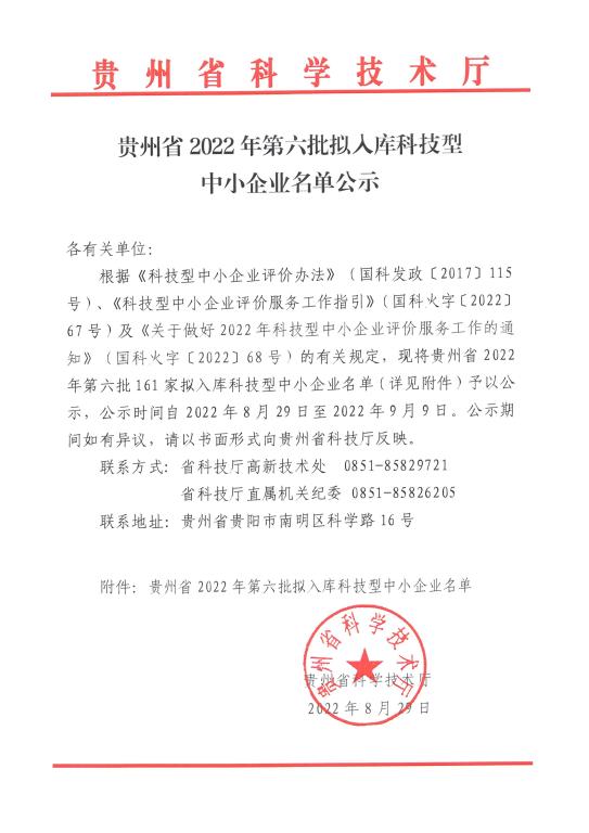貴州省2022年第6批擬入庫(kù)科技型中小企業(yè)名單公示正文.jpg PICTURE