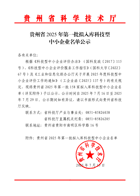 貴州省2025年第1批擬入庫(kù)科技型中小企業(yè)名單公示正文.jpg PICTURE