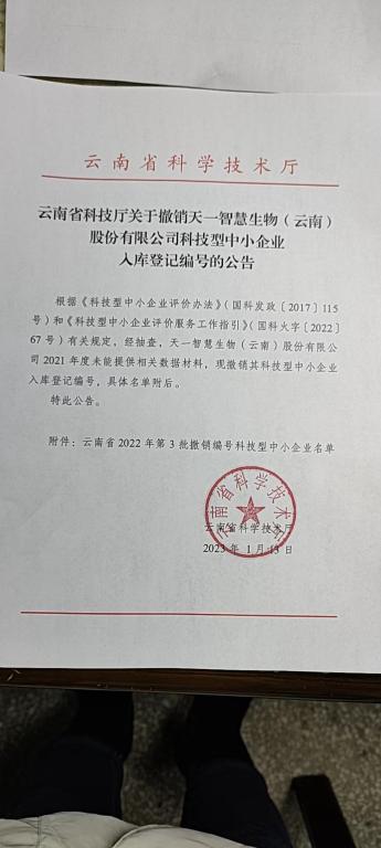 云南省2022年第3批撤銷編號科技型中小企業(yè)名單公告