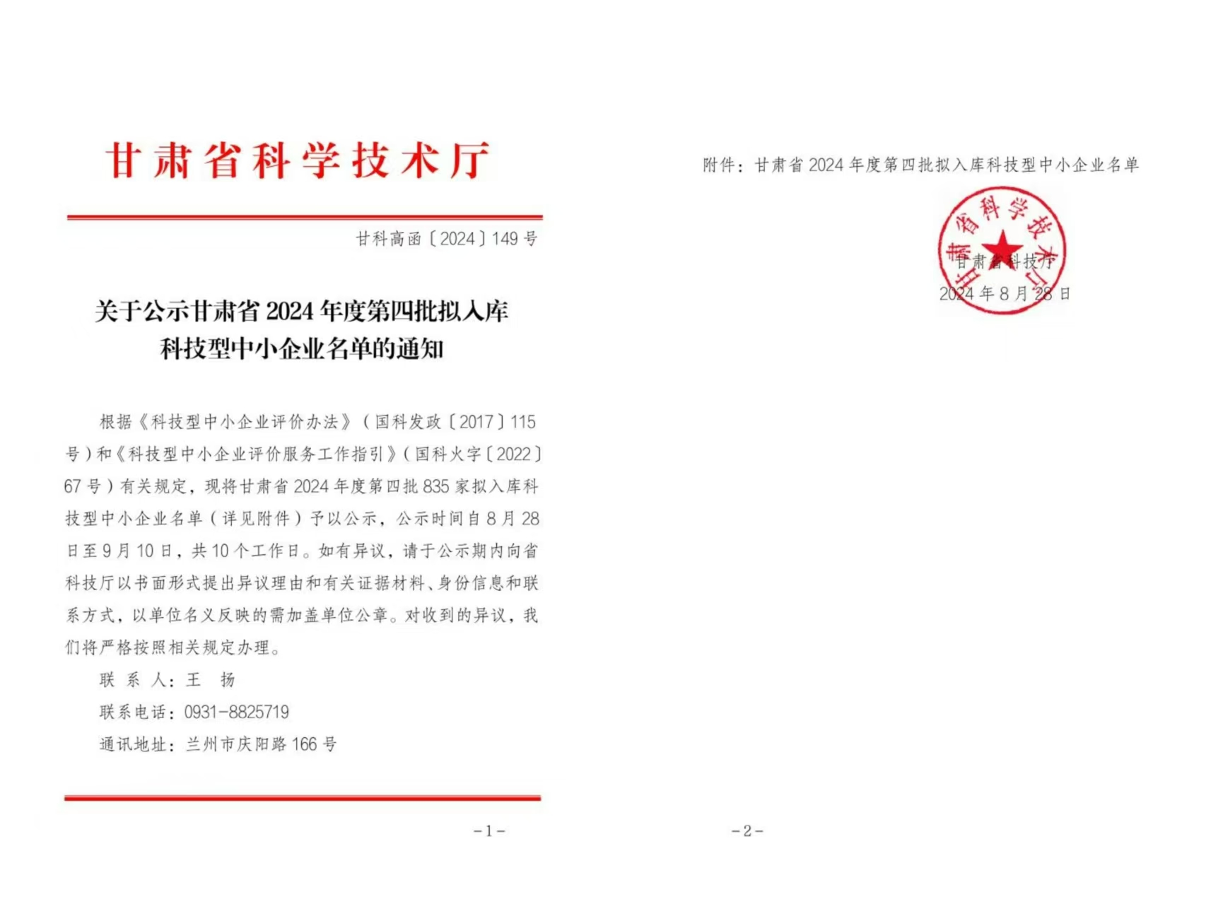 甘肅省2024年第4批擬入庫科技型中小企業(yè)名單公示