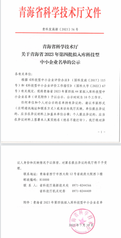 青海省2023年第4批擬入庫(kù)科技型中小企業(yè)名單公示正文.jpg PICTURE