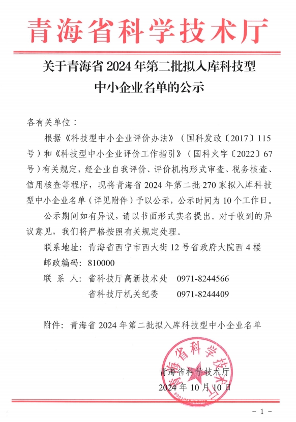 青海省2024年第2批擬入庫科技型中小企業(yè)名單公示