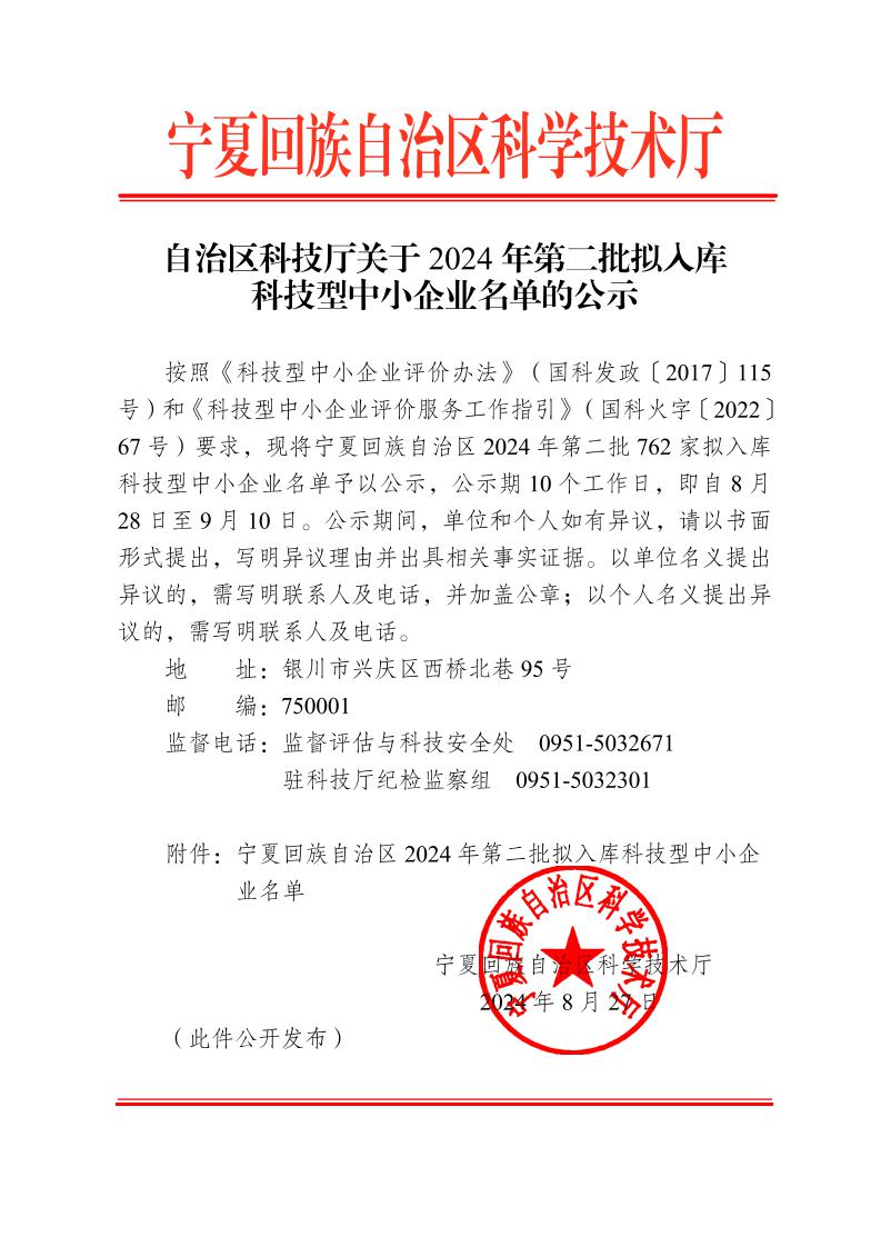 寧夏回族自治區(qū)2024年第2批擬入庫科技型中小企業(yè)名單公示