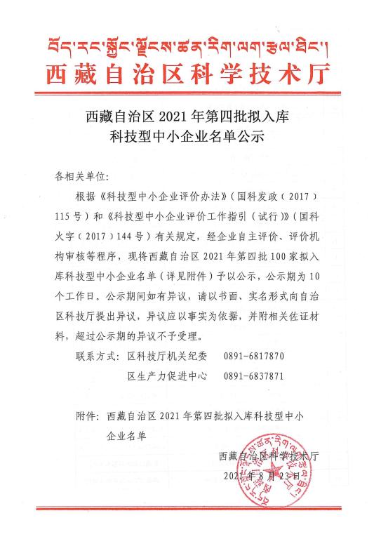 西藏自治區(qū)2021年第4批擬入庫(kù)科技型中小企業(yè)名單公示正文.jpg PICTURE