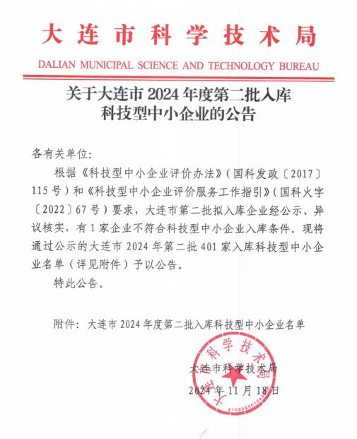 大連市2024年第2批入庫(kù)科技型中小企業(yè)名單公告正文.jpg PICTURE