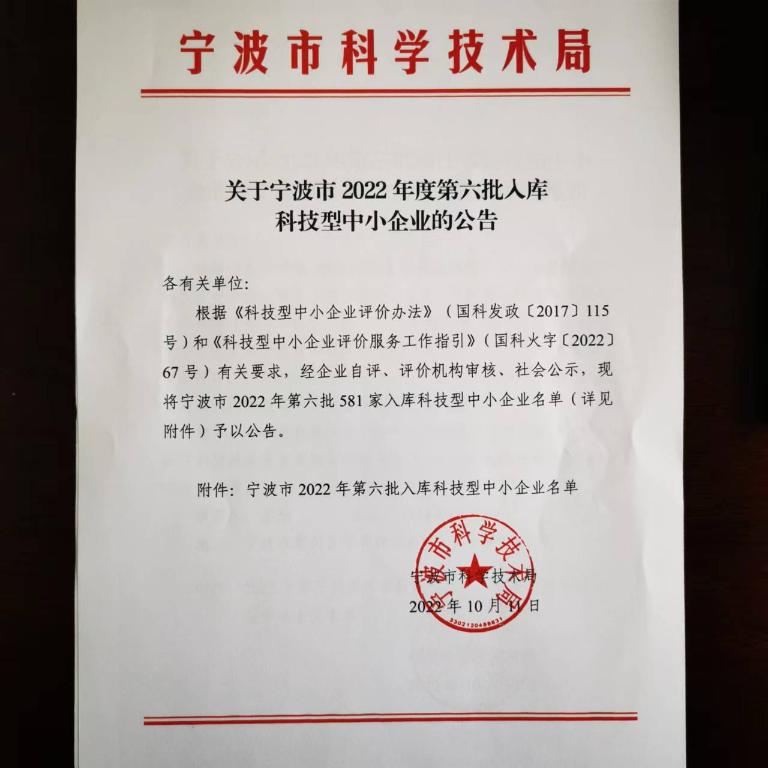 寧波市2022年第6批入庫(kù)科技型中小企業(yè)名單公告正文.jpg PICTURE