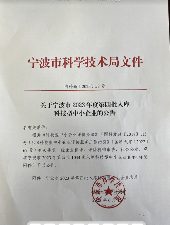 寧波市2023年第4批入庫科技型中小企業(yè)名單公告