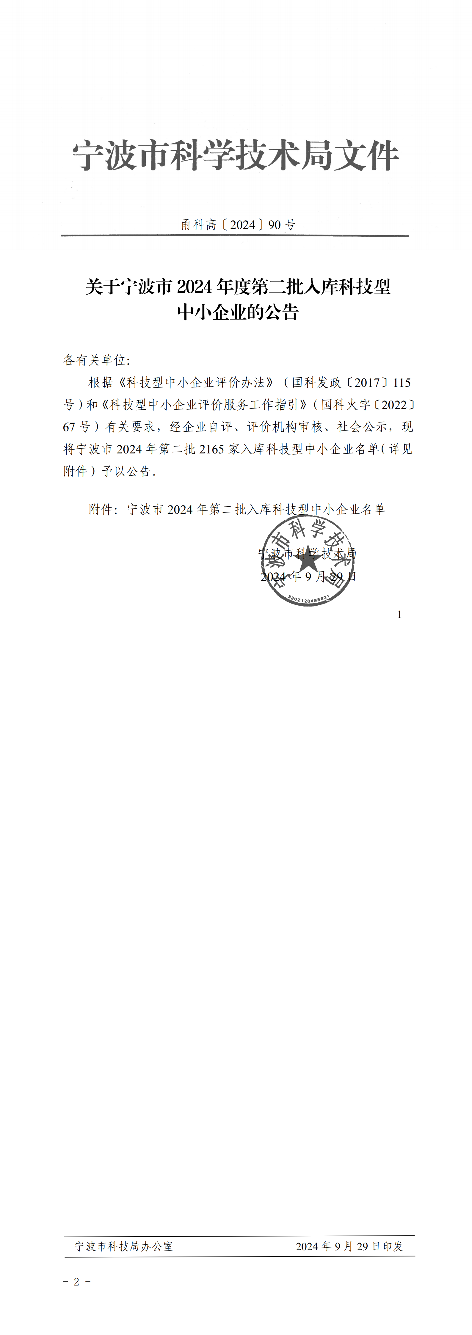 寧波市2024年第2批入庫科技型中小企業(yè)名單公告