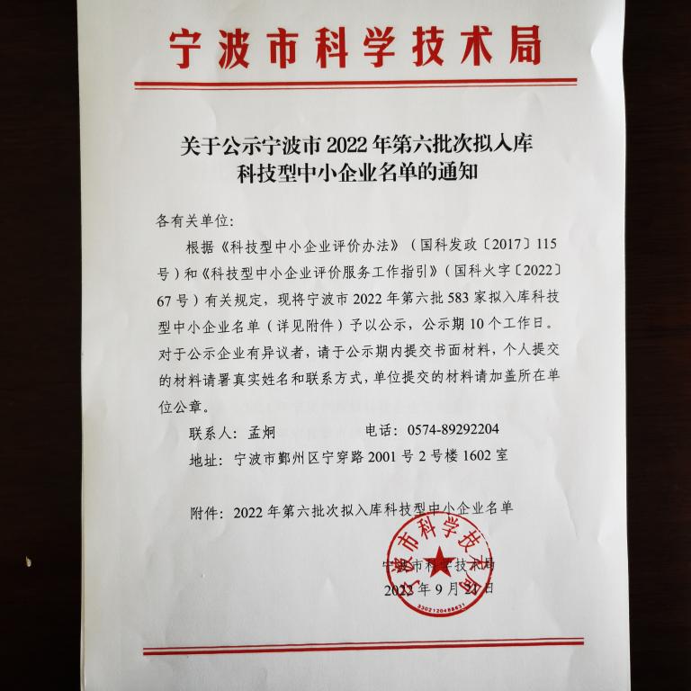 寧波市2022年第6批擬入庫(kù)科技型中小企業(yè)名單公示正文.jpg PICTURE